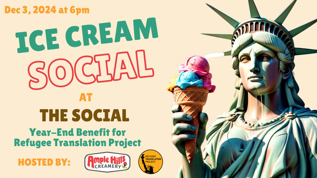 Enjoy ice cream as we celebrate a banner year and help us continue providing free language services to asylum seekers in NYC. Every scoop of ice cream, every raffle ticket, and every dollar raised helps us provide essential translation services that help people reach safety and stability!